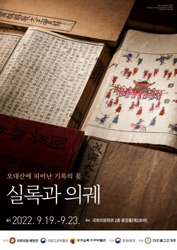 국립고궁박물관은 국민의힘 배현진 의원, 왕조실록·의궤박물관과 함께 19일부터 23일까지 서울 여의도 국회의원회관 제2 로비에서 '오대산에 피어난 기록의 꽃, 실록과 의궤' 전시를 연다고 16일 밝혔다.