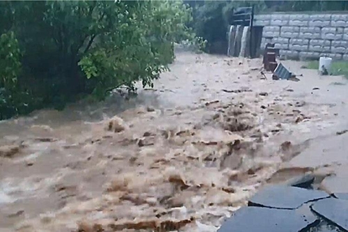 | ▲ This image shows a flooding stream in Dangjin, South Chungcheong Province, on July 17, 2025. (PHOTO NOT FOR SALE) (Yonhap) |