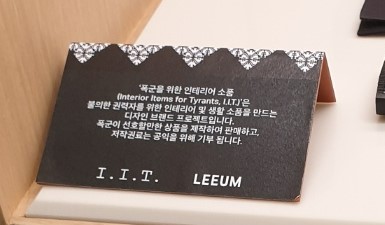 | ▲ (서울=연합뉴스) 황희경 기자 = 서울 한남동 리움미술관에서 25일 개막하는 김범 개인전과 연계해 리움스토어에서 판매하는 상품 안내문. '폭군이 선호할 만한 상품을 제작해 판매하고 저작권료는 공익을 위해 기부한다'는 내용이 적혀 있다. 2023.7.24. zitrone@yna.co.kr |