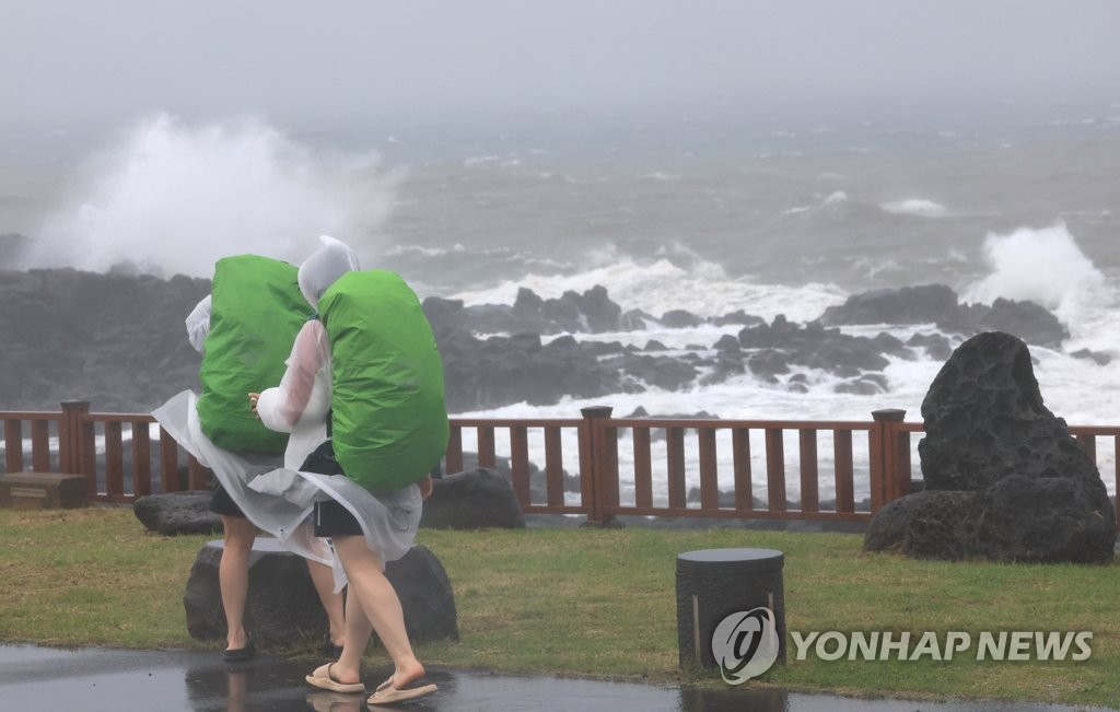| ▲ 비바람 몰아치는 제주 해안 (서귀포=연합뉴스) 박지호 기자 = 제주에 호우특보가 내려진 4일 오전 제주 서귀포시 사계해안도로에서 우비로 무장한 배낭여행객이 걷고 있다. 2023.5.4 jihopark@yna.co.kr |