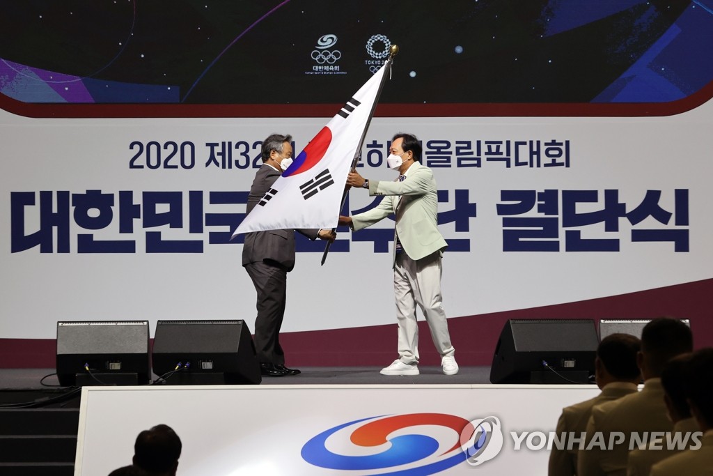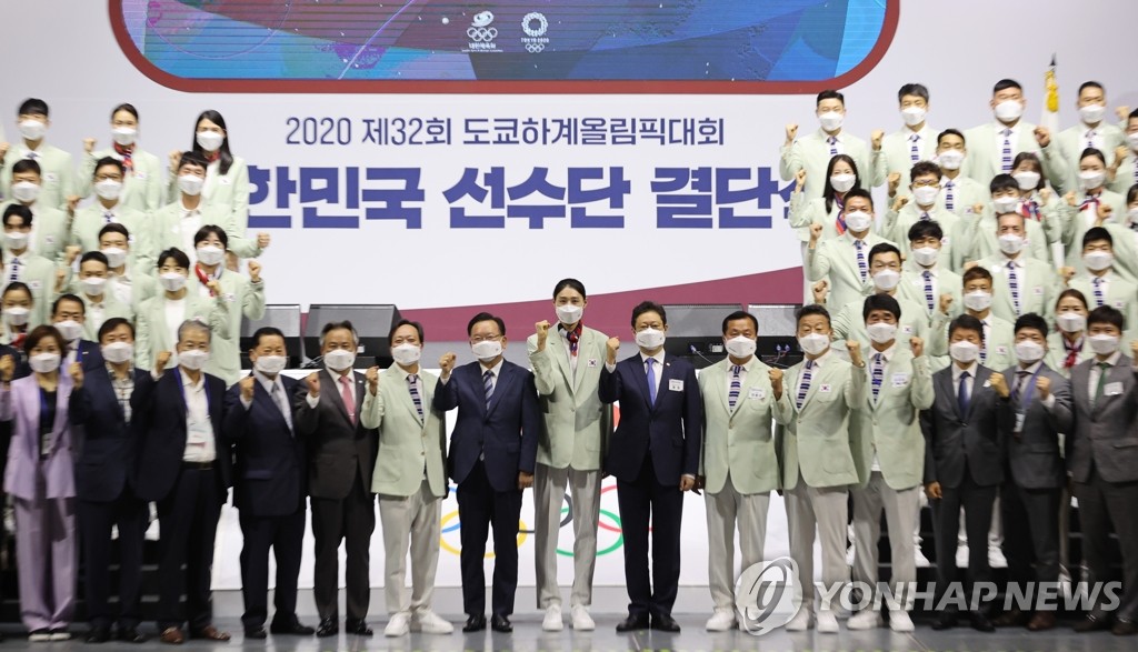 SEOUL, July 8 (Yonhap) -- South Korea embarked on a quest for a top-10 performance at the upcoming Tokyo Olympics with a launching ceremony for its delegation on Thursday, with the weary nation ready to lean on its Olympians for hope and inspiration during the global coronavirus pandemic.