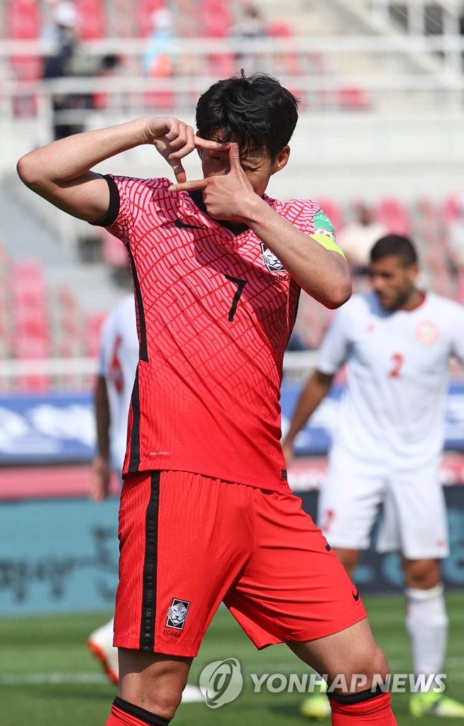 | ▲ In this file photo from June 13, 2021, Son Heung-min of South Korea celebrates his goal against Lebanon during the teams' Group H match in the second round of the Asian qualification for the 2022 FIFA World Cup at Goyang Stadium in Goyang, Gyeonggi Province. (Yonhap) |
