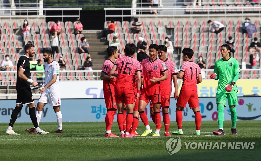 | ▲ In this file photo from June 13, 2021, South Korean players celebrate their 2-1 win over Lebanon in the teams' Group H match in the second round of the Asian qualification for the 2022 FIFA World Cup at Goyang Stadium in Goyang, Gyeonggi Province. (Yonhap) |