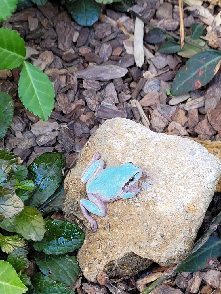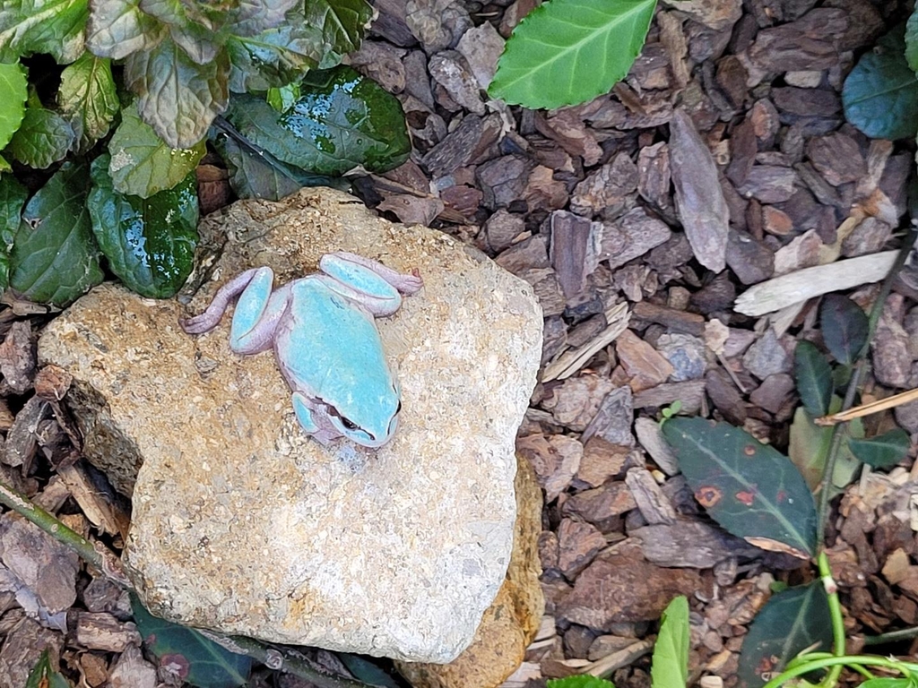 피부색이 하늘색으로 일명 '백색증 개구리' '변종 개구리'로 불린다.