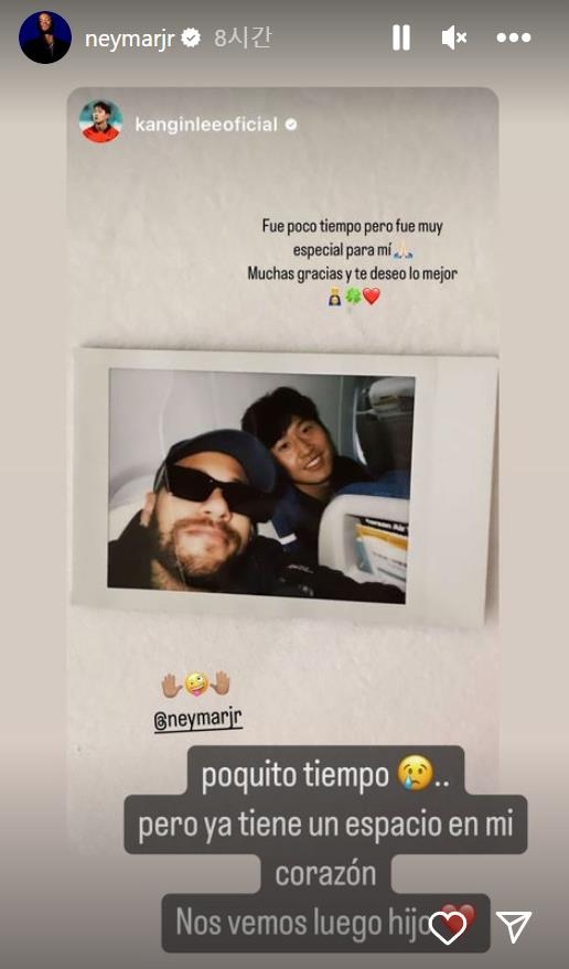이강인은 네이마르의 알힐랄(사우디아라비아)행이 발표된 직후 인스타그램에 "짧은 시간이었지만 내겐 특별했어. 정말 고맙고, 좋은 일만 가득하기를 바랄게"라고 썼다.
