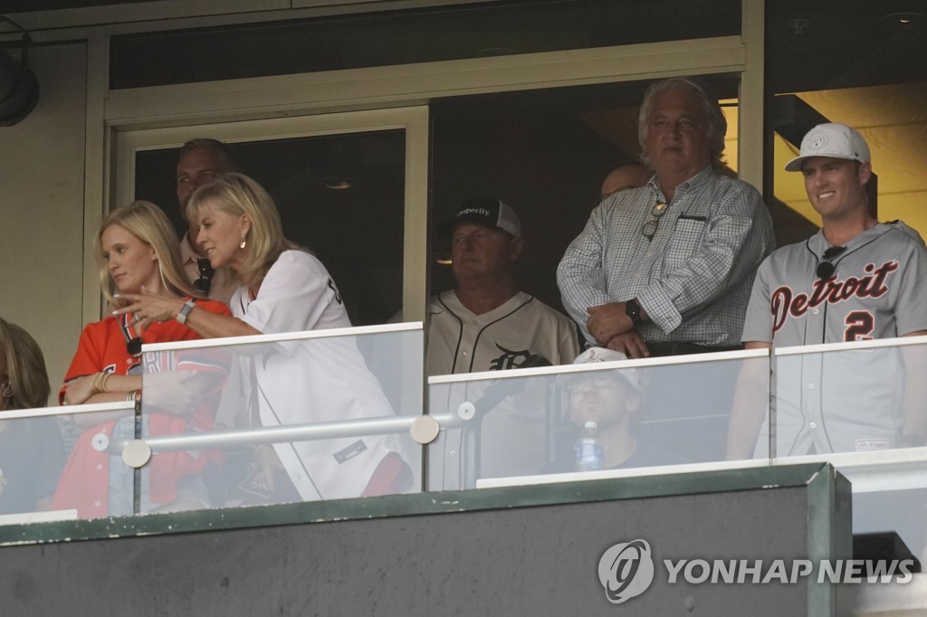 | ▲ 지인, 가족들과 함께 아들의 빅리그 데뷔전 지켜본 클레먼스(가운데) [AP=연합뉴스] |