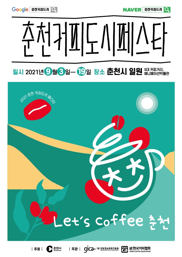 춘천시가 주최하고 강원정보문화진흥원이 주관하는 이번 축제는 9월 3일 개막식을 시작으로 19일까지 '춘천 커피도시 페스타'라는 이름으로 서면 애니메이션박물관과 카페가 집중된 구봉산 일대 등 5개 지역에서 온·오프라인으로 열린다.