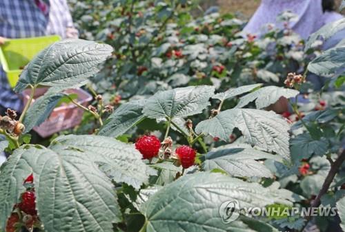 (포항=연합뉴스) 손대성 기자 = 경북 포항시 남구 장기면 주민들이 특산물인 산딸기 생산량이 줄어 고심하고 있다.