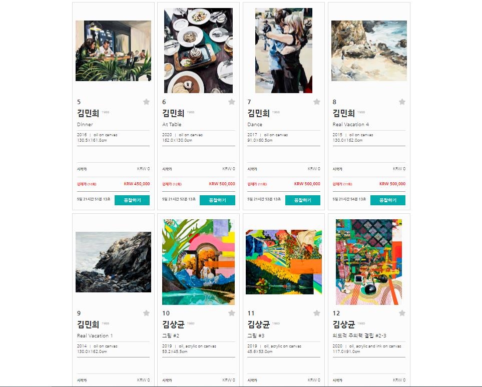 | ▲ 서울옥션 제로베이스 경매에 부쳐진 아트경기 작가들 [서울옥션 누리집 갈무리. 재판매 및 DB 금지] |