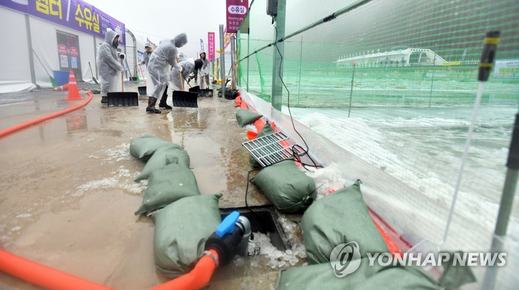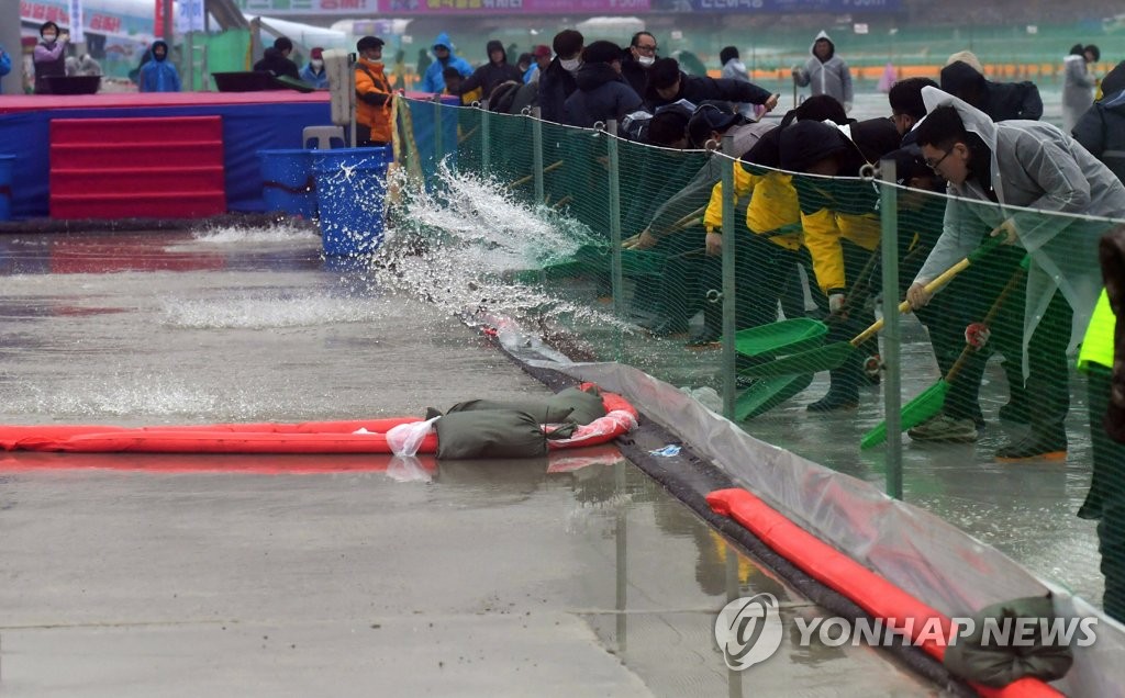 | ▲ 빗물 제거 한창인 화천산천어축제 [화천군 제공. 재판매 및 DB 금지] |