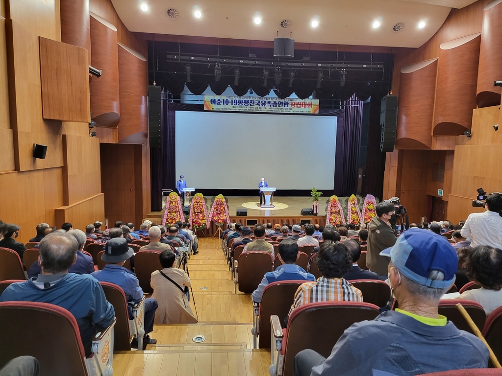 (순천=연합뉴스) 장덕종 기자 = 전국 여순사건 유족들로 결성된 '여순10·19항쟁전국유족총연합' 창립 출범식이 22일 전남 순천시문화건강센터에서 열렸다.