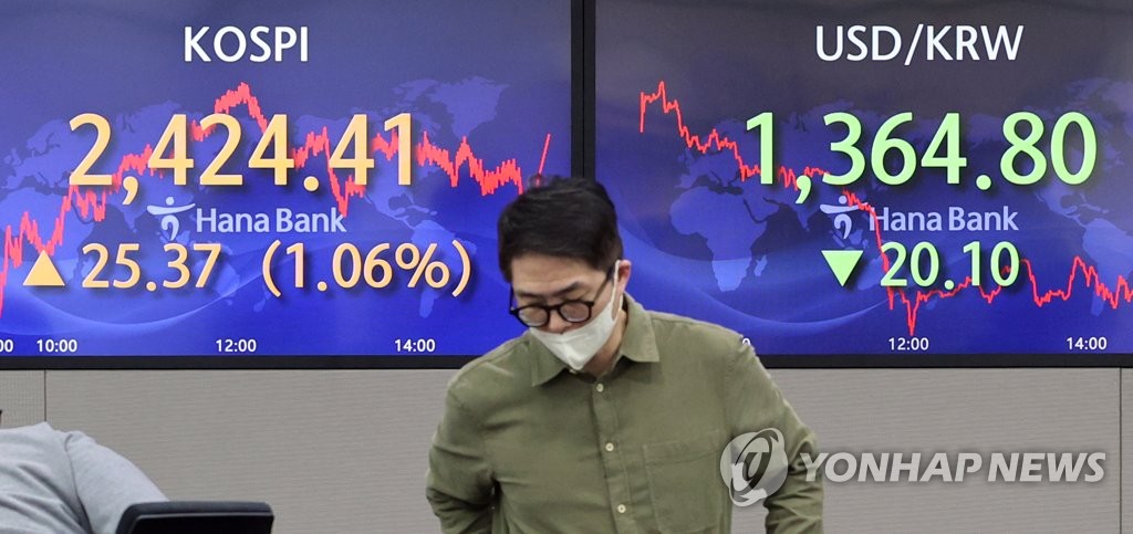 The local currency ended at 1,364.80 won Wednesday, up 20.10 won from a day earlier after rising to as high as 1,360.20 in intraday trading. It was the first time the won has risen to the 1,360 range since Sept. 2.