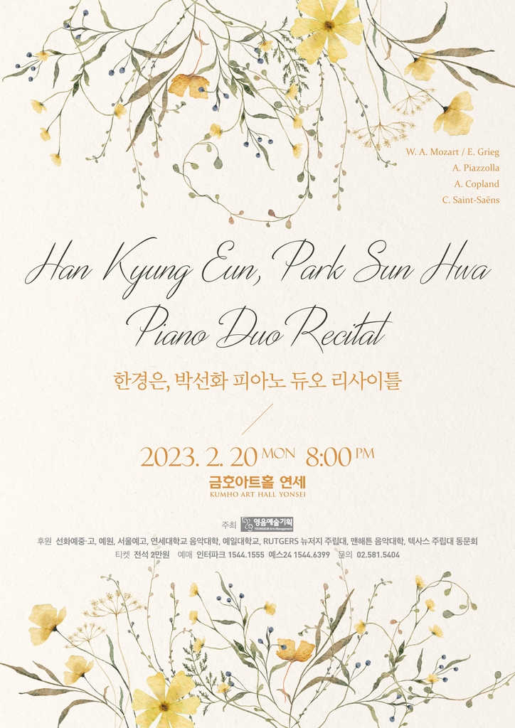 ▲ 한경은·박선화 피아노 듀오 리사이틀 = 피아니스트 한경은과 박선화의 피아노 듀오 리사이틀이 오는 20일 서울 금호아트홀연세에서 열린다.
