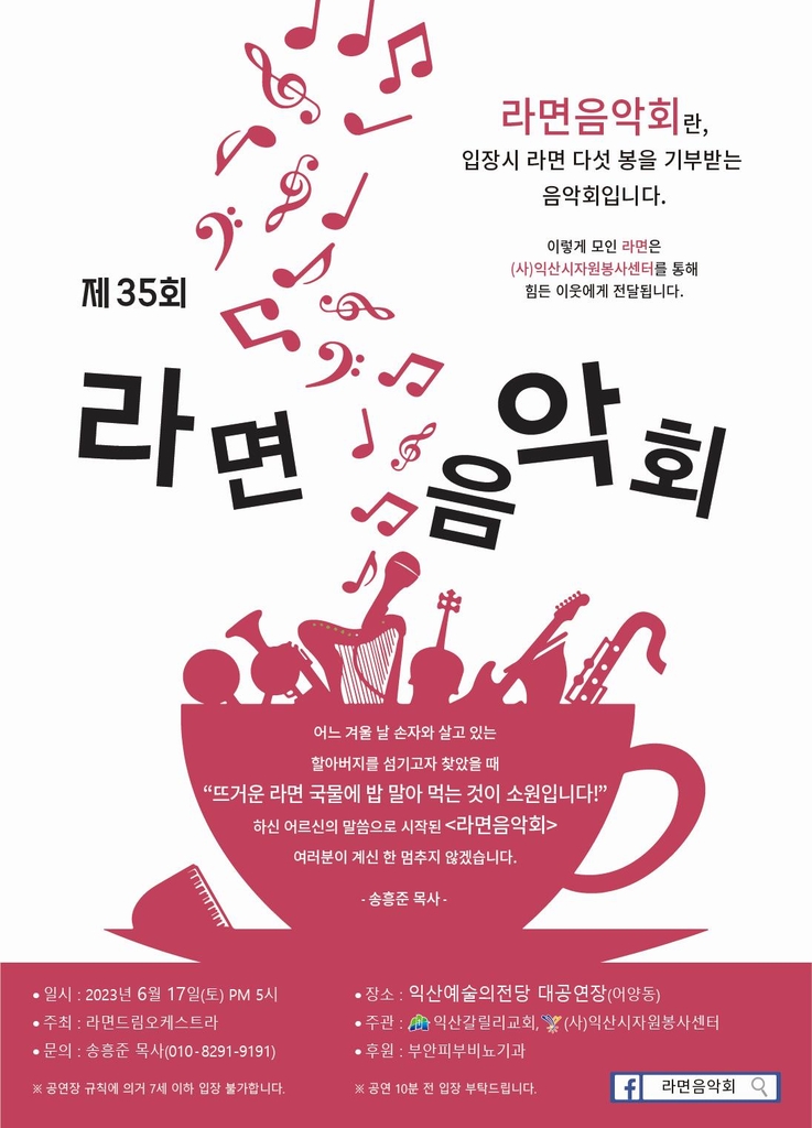 (익산=연합뉴스) 홍인철 기자 = "입장료 대신 라면 다섯 봉지로 음악회를 즐기고 이웃도 도와주세요."