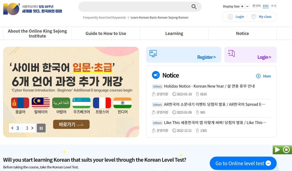 | ▲ 온라인 세종학당 홈페이지 캡처 |