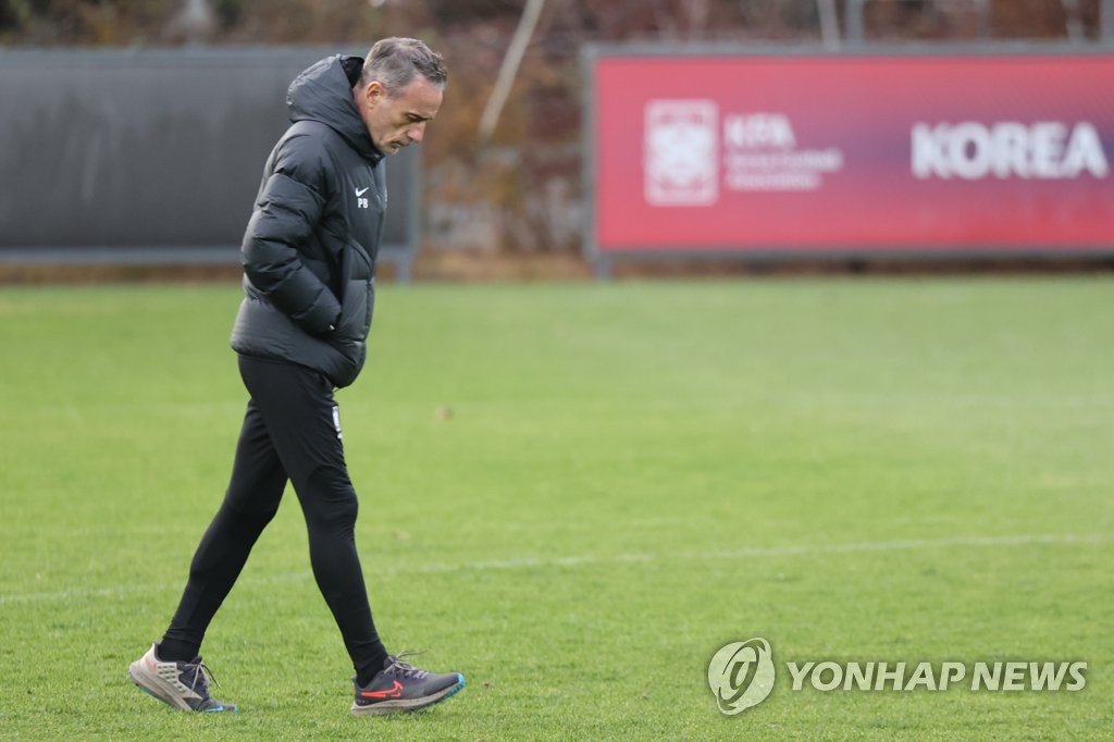 | ▲ 손흥민 부상으로 월드컵 출전 불투명…깊어지는 벤투의 고민 (파주=연합뉴스) 서대연 기자 = 3일 경기도 파주 NFC(축구대표팀 트레이닝센터)에서 열린 축구 남자 국가대표팀 소집훈련에서 파울루 벤투 감독이 생각에 잠겨 있다. 2022 카타르 월드컵을 보름여 앞둔 가운데 한국 축구 에이스인 손흥민이 왼쪽 눈 부위 골절로 수술을 받게 되며 월드컵 출전이 불투명해졌다. 2022.11.3 dwise@yna.co.kr |