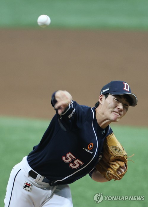 "They've been pitching well so far, and I'll continue to run them out there," Kim said before Game 3 of the South Korean baseball championship round against the NC Dinos. "We have a couple of veterans who really haven't shown much so far. If our starters (in the next two games) can give us about five innings, then I'll go with our young relievers."