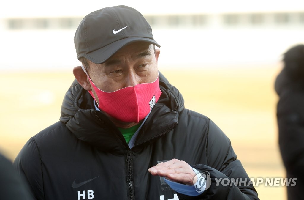 | ▲ 김학범 감독 "목표는 승리다" (강릉=연합뉴스) 양지웅 기자 = 김학범 대한민국 남자 올림픽 축구대표팀 감독이 12일 오후 강원 강릉시 종합운동장에서 새해 첫 소집 훈련을 시작하며 취재진 질문에 답하고 있다. 2021.1.12 yangdoo@yna.co.kr |
