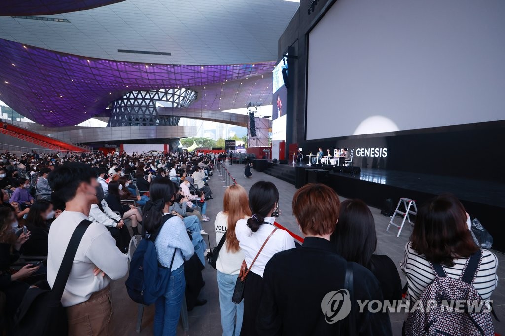 | ▲ 영화제 즐기는 시민들…BIFF 야외무대 '후끈 (부산=연합뉴스) 진연수 기자 = 6일 오후 부산 해운대구 영화의 전당 야외무대를 찾은 시민들이 제27회 부산국제영화제(BIFF) 디즈니+의 오리지널 시리즈 '커넥트' 오픈토크를 관람하고 있다. 2022.10.6 jin90@yna.co.kr |