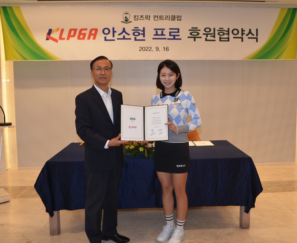 김정관 킹즈락 골프장 부대표는 "안소현 선수의 골프에 대한 열정과 순수하고 열린 마음이 우리 골프장이 추구하는 이미지와 결이 같다"며 "우리 골프장과 안소현 선수가 오래도록 동반 성장하도록 후원을 아끼지 않겠다"고 말했다.