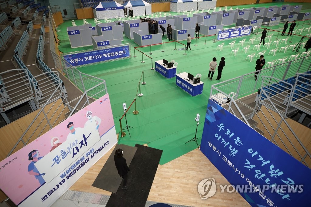 | ▲ A new coronavirus vaccination center opens in Gangneung, 237 kilometer east of Seoul, on March 15, 2021. (Yonhap) |