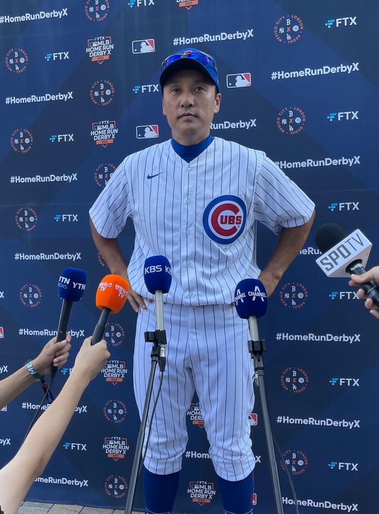 (영종도=연합뉴스) 이대호 기자 = '국민 타자' 이승엽(46) KBO 홍보대사는 'FTX MLB 홈런더비 X'를 하루 앞둔 16일 취재진 앞에서 "전직 빅리거도 이길 수 있다. 훈련할 때 타구가 정말 좋았다"고 큰소리쳤다.