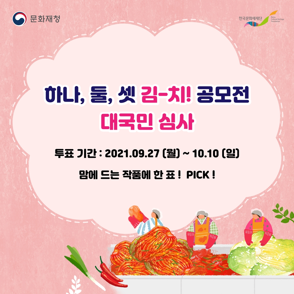 ▲ 문화재청은 '하나, 둘, 셋 김치 공모전'에 참가한 사진·영상·수필 247개 작품 중 전문가들이 뽑은 45건을 대상으로 27일부터 다음 달 10일까지 대국민 온라인 심사를 진행한다.