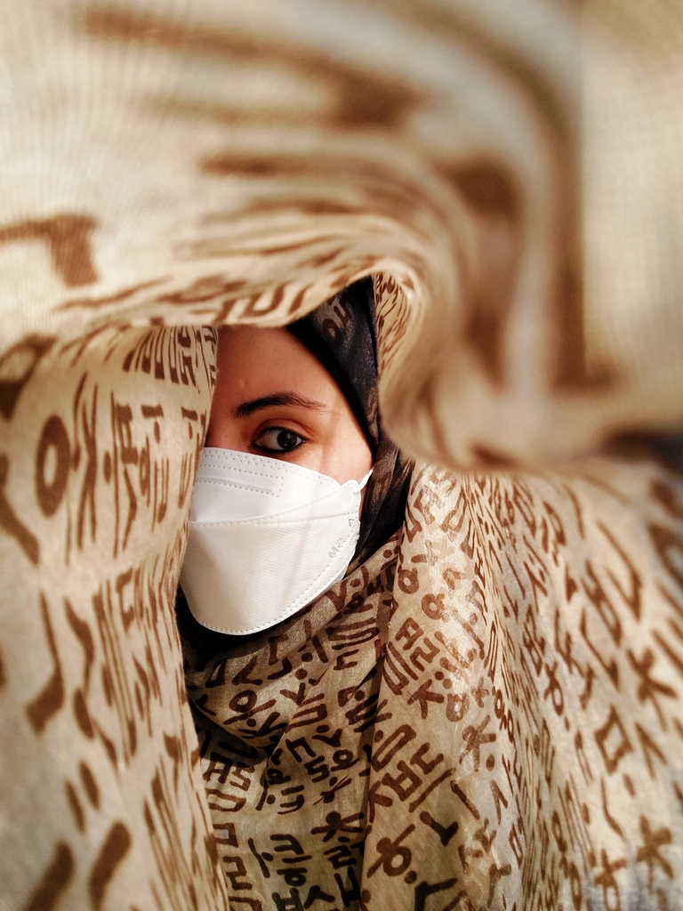 이 작품은 한글 디자인을 활용해 만든 스카프인 히잡을 쓴 여인의 모습을 포착했다. 일상 속 한글의 아름다움과 마스크를 쓴 여인의 강렬한 시선이 인상적이라는 평가를 받았다.