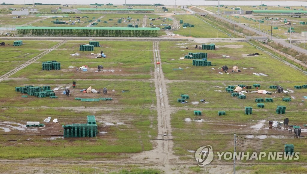 | ▲ Pools are seen at campsites at Saemangeum, the main venue for the 2023 World Scout Jamboree, on Aug. 11, 2023, after heavy rain pounded the reclaimed land on the southwestern coast. (Yonhap) |