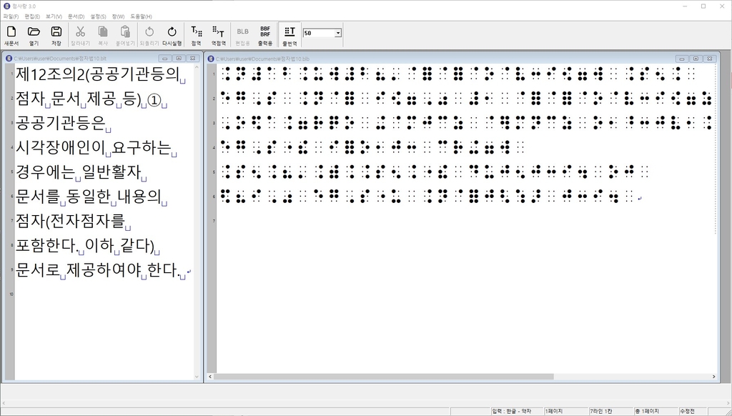 (서울=연합뉴스) 박상현 기자 = ▲ 국립국어원, 새 점자 번역 프로그램 개발 = 국립국어원은 한국시각장애인연합회, 자유소프트와 함께 새로운 점자 번역 프로그램 '점사랑 3.0'을 개발했다고 7일 밝혔다.