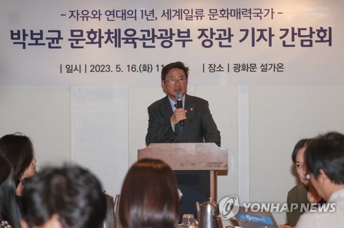 SEOUL, May 16 (Yonhap) -- The culture minister said Tuesday his ministry will persevere in broadening the scope of "K-culture" beyond the realm of contemporary pop culture with a focus on providing support for books, traditional Korean music, musicals and ballet this year.