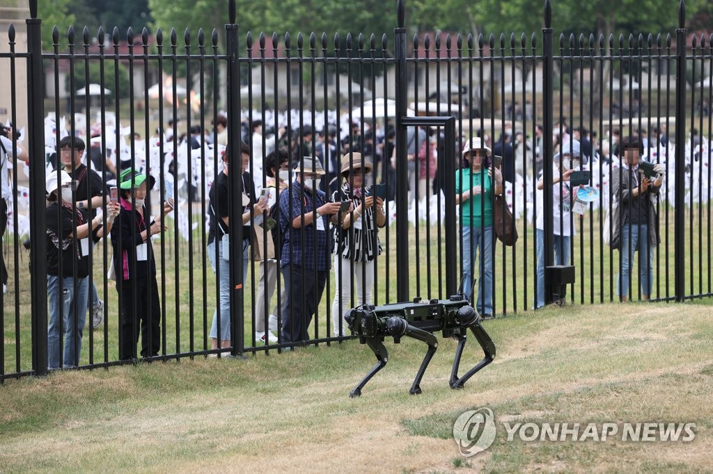 대통령 집무실 앞으로 펼쳐진 '국민의 바람정원'에서는 네 발로 걷는 '경비로봇' 2대가 정원 울타리 근처를 분주하게 돌아다니고 있었다.