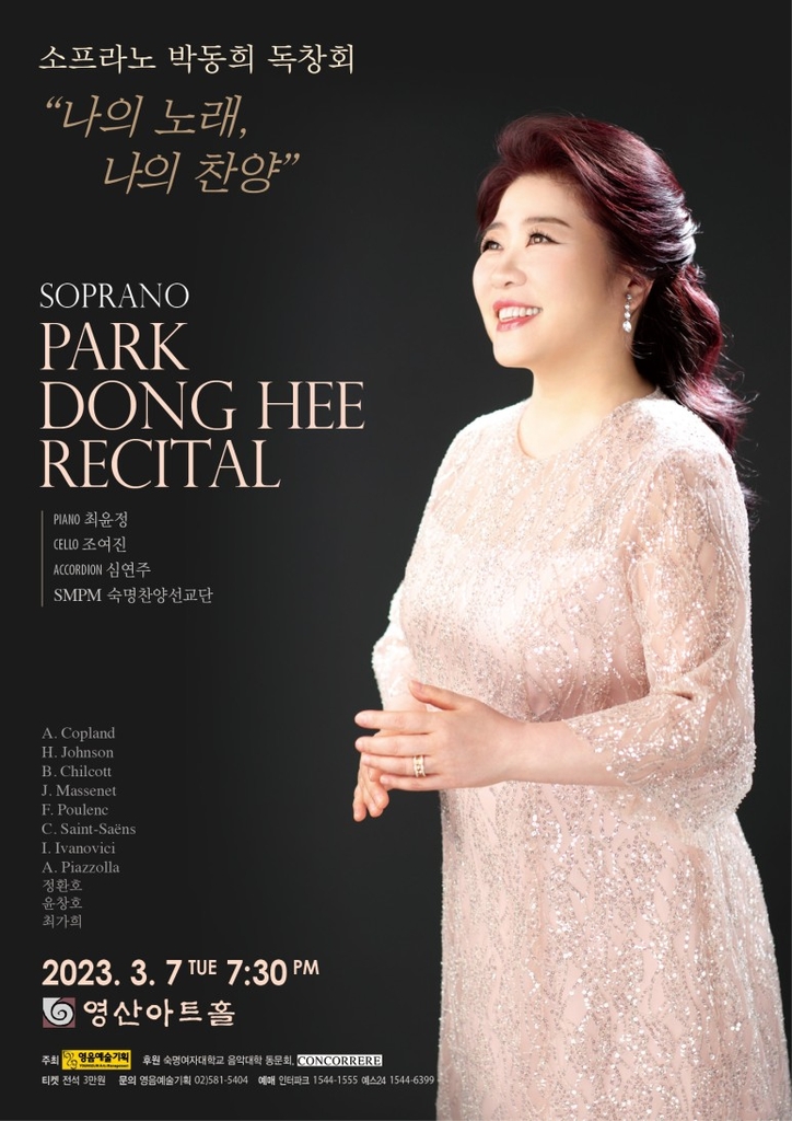 ▲ 소프라노 박동희 독창회 = 소프라노 박동희가 오는 3월 7일 서울 영산아트홀에서 독창회 '나의 노래, 나의 찬양'을 연다.