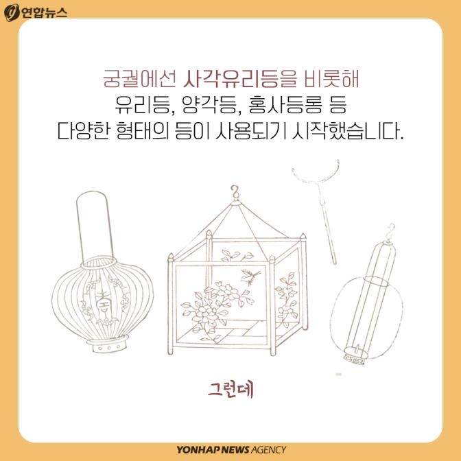 궁궐에선 사각유리등을 비롯해 유리 등, 양각 등, 홍사등롱(紅紗燈籠) 등 다양한 형태의 등이 사용되기 시작했습니다.