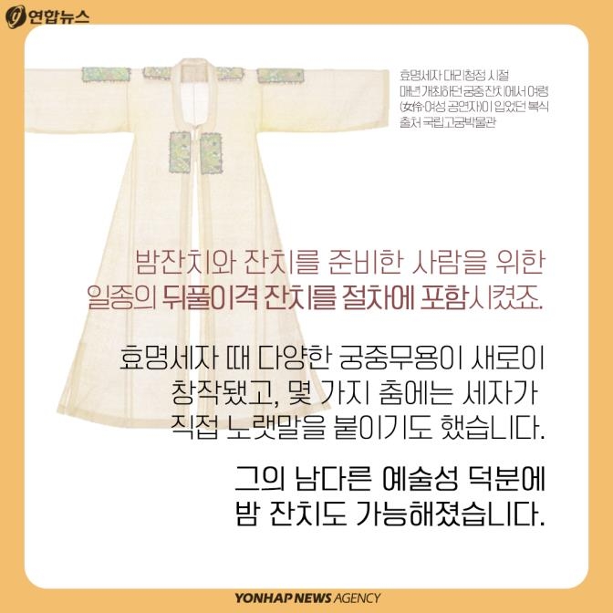 23대 임금 순조의 왕세자였던 효명세자가 1828년 어머니 순원왕후의 사순(40세) 축하연을 저녁에 열면서 밤잔치 문화가 생겨났습니다.