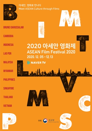 (서울=연합뉴스) 김동현 기자 = 외교부는 한국과 아세안(동남아시아국가연합·ASEAN) 간 문화교류를 위해 12월 5일부터 13일까지 온라인으로 '2020 아세안 영화제'를 개최한다고 30일 밝혔다.