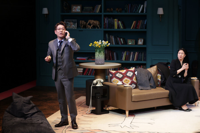 South Korean actor Min Young-ki and actress Lim Kang-hee, who star in the musical "Carnage," perform during a publicity event in Seoul on Dec. 10, 2024. The musical runs from Dec. 3 to Jan. 5. (Yonhap)