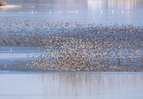 올겨울 가창오리 3만여 마리가 주남저수지에 둥지를 틀었다.