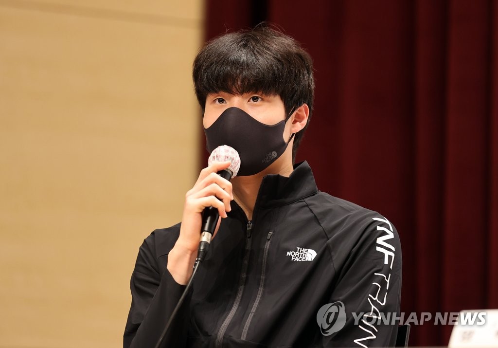 ▲ South Korean fencer Gu Bon-gil speaks at a press conference at the National Training Center in Jincheon, 90 kilometers south of Seoul, on April 14, 2021. (Yonhap)