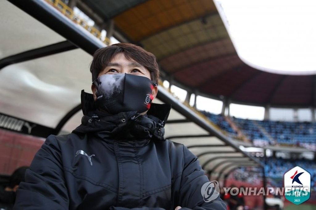 | ▲ In this March 13, 2021, file photo provided by the Korea Professional Football League, Pohang Steelers head coach Kim Gi-dong watches his team in a K League 1 match against Ulsan Hyundai FC at Pohang Steel Yard in Pohang, 370 kilometers southeast of Seoul. (Yonhap) |