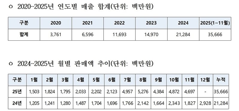 4∼6월에 평균 20억원대였던 매출은 7월 한 달간 약 49억5천700만원을 기록하며 배로 늘었고, 8월에는 약 52억7천600만원을 달성했다.