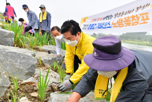 이날 군은 군민과 함께 장성 황룡강 일원에 노랑꽃창포를 식재했다.