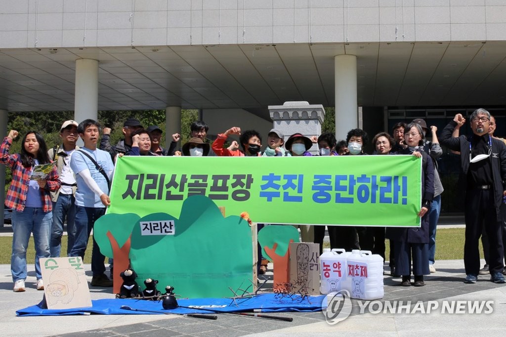 환경단체는 골프장 추진 의혹을 제기하며 구례군의 벌채 허가 및 골프장 시행사와의 업무협약에 대한 감사원 감사를 촉구했다.