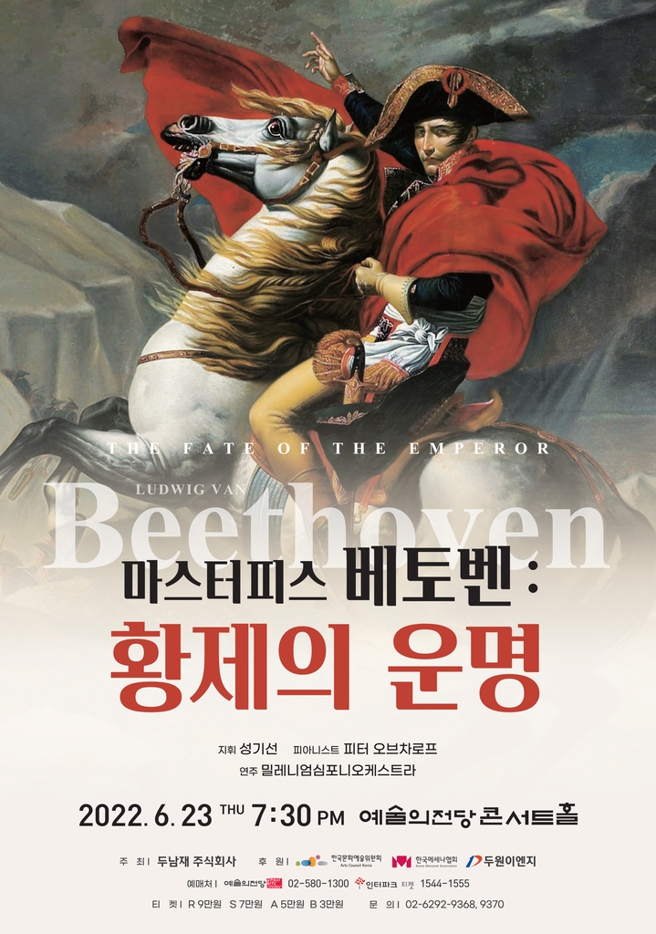 ▲ '마스터피스 베토벤: 황제의 운명' 콘서트 = 밀레니엄심포니오케스트라는 오는 23일 서울 예술의전당 콘서트홀에서 '마스터피스 - 베토벤 : 황제의 운명' 연주회를 마련한다.