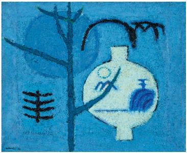 김환기의 '항아리'(1958)는 파리에서 고국을 향한 그리움을 담은 작품으로, 달항아리와 함께 한국의 산등성이, 달, 바다를 그렸다. 추정가는 12억~20억 원이다.
