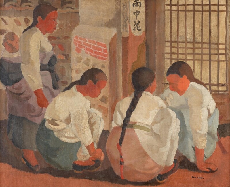 | ▲ 장욱진, <공기놀이>, 1938, 캔버스에 유화물감, 65x80.5cm, 국립현대미술관 이건희컬렉션[국립현대미술관 제공. 재판매 및 DB 금지] |