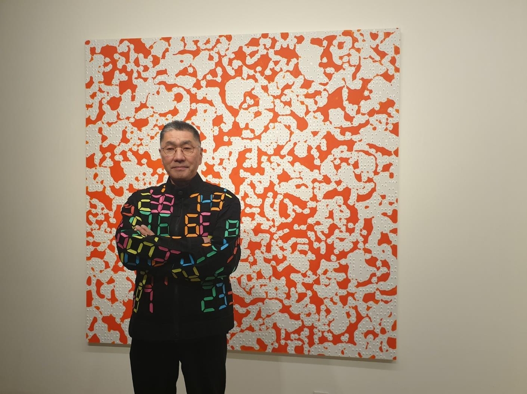| ▲ 미야지마 다쓰오 작가 (서울=연합뉴스) 황희경 기자 = 미야지마 다쓰오 작가가 2일 서울 한남동 갤러리바톤에서 열린 기자간담회에서 포즈를 취하고 있다. 2023.3.2. zitrone@yna.co.kr |