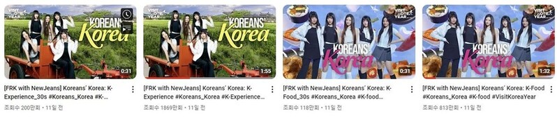 뉴진스 출연 한국관광 해외광고 영상, 공개 11일 만에 3천만뷰