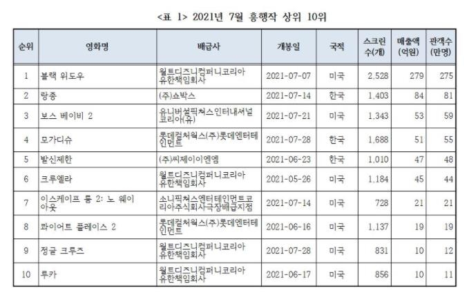 | ▲ 7월 흥행작 10위 [영화진흥위원회 제공. 재판매 및 DB 금지] |