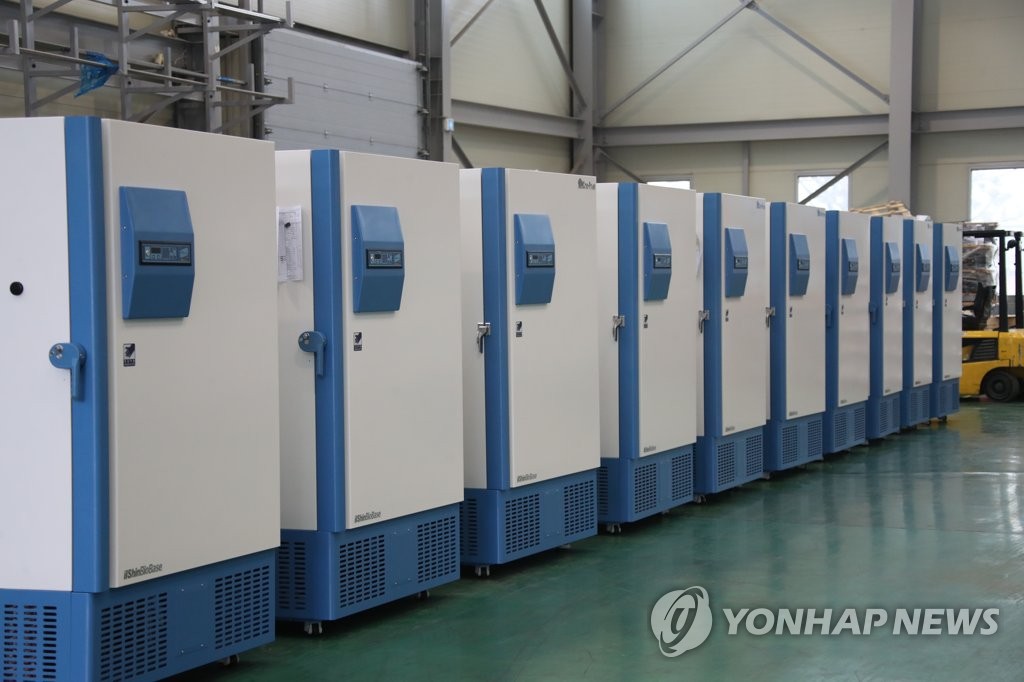 | ▲ This photo, taken on Jan. 21, 2021, shows freezers to store coronavirus vaccines at a factory in the northern city of Dongducheon. (Yonhap) |